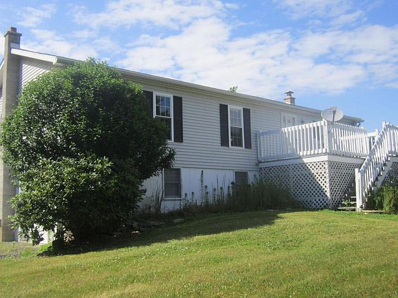 Nice Raised Ranch on private 2.86 acre parcel. Full unfinished basement with garage door. Large shed, deck, pavilion and huge yard.