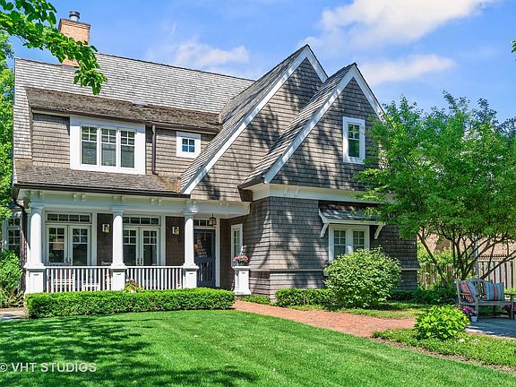 The only thing missing in this custom Nantucket is the sound of the ocean waves from this beautiful backyard because the rest is all here! East Coast picturesque perfection combined w/the finest construction brings this home to an incredible caliber of the highest quality. Red paver brick walkway leads to you the welcoming porch complete w/ rocking chairs & white window flower boxes. Wide, open reception foyer corridor leads the way to all of the first floor gathering spaces with rich millwork, soaring ceilings & beautiful room sizes. Sunlit living room w/ built ins, FP, and doors out to the front porch & lush front lawn w/ manicured boxwoods all set in this prime east Kenilworth locale. Handsome 1st floor office w/ built ins/WBFP make for the perfect private space. Sensational dining rm is the focal point at the end of the corridor beautifully outfitted with oversized bay windows overlooking the incredibly beautiful landscaped backyard & entertaining patio. Warm and inviting great room combines family, breakfast & kitchen making it the hub of this expansive floor. This sun drenched finely appointed space w/french doors that open to dining patio, wall of custom built-ins, breakfast rm with floor to ceiling windows, & white Chef's kitchen with fab butlers pantry wet bar. The beautifully tailored kitchen w/ Ann Sacks grey subway tile, open shelving, island w/ seating for 4 & professional S/S appliances. Mudroom right off kitchen attaches to a 3 car heated garage w/ample storage. The ideal 2nd floor has 4 beds all with luxury en-suite baths with the finest carrara marble, Waterworks fixtures & Serena & Lily wall coverings. Luxury master suite w/ sitting area and walk-in closet, spa bath and private deck. 5th full bath off hallway serves 3rd floor bedroom & full laundry room. 3rd floor bonus hideaway space with 2nd office, rec space or 6th bedroom is complemented w/skylights & custom millwork. Sensational lower level w high ceilings, rec room w/ 2nd kitchen/bar, full bath, huge bedroom, wine cellar room and storage galore. The backyard wraps this entire house up in the best way with gorgeous manicured grounds, bluestone paths & patios, fire pit area, organic vegetable gardens, and lush yard. If you have that love for a coastal vibe, this happy house is it ...authentic Nantucket home with the absolute finest engineering and finishes! Literally just steps to KW beach, train, and schools and parks. Very special offering as it's very hard to find a newer home in this area that delivers the best in curb appeal and fine details.