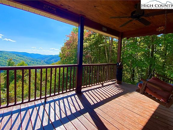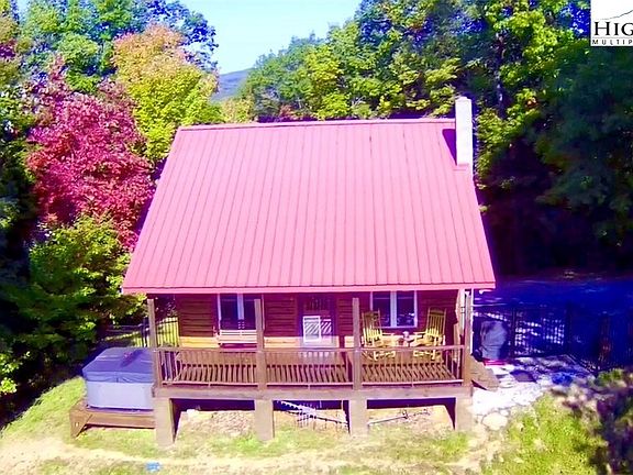 Fully furnished cabin with incredible views! This 1.5 story cabin. Main Level Living, Beautiful Live Edge wood Bar & Coffee Bar. Granite Countertops, Wood stove for additional heat source, Spacious Kitchen. Main Floor Offers: Bedroom, Laundry Room/Full Bath/Utility Room, Open Concept Living Room w/Wood stove-Fireplace/Dining w/Bar Seating/Kitchen w/Appliances, Coffee Bar with view out of windows to porch & long range mountain views. Upper Level can be used as a bedroom or bonus rm. Outdoor spaces: Covered porch & space for a hot tub looking out to year round long range mountain views, storage shed. Parking: Spacious parking/turn around area. Property: 5.05 Acres of wooded land, fenced/cleared/grass yard w/mountain views, tree lined gravel/earth driveway. Subdivision: White Rock located in Watauga County. POA $200/year. White Rock offers a beautiful waterfall not far from property. (Don't rely on GPS) Above ground propane tank. Well/2 Bedroom septic. Fenced back yard/full fence enclosure for back of home. Hot Tub does not convey. Watauga Cty GIS shows home as a 1 bedroom. Upstairs can be bedroom or bonus room.