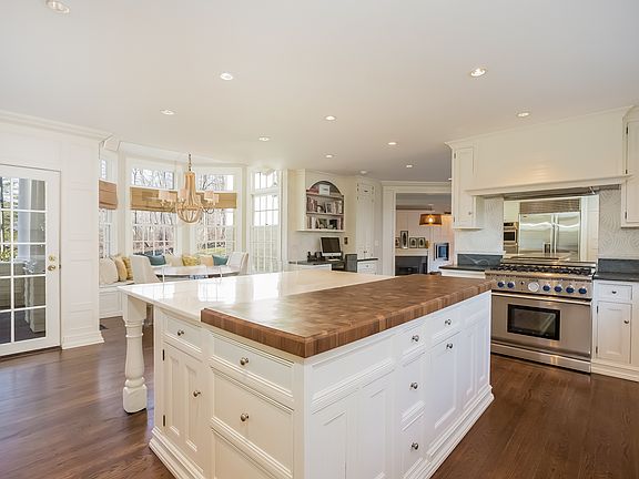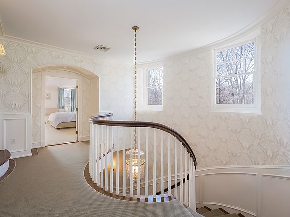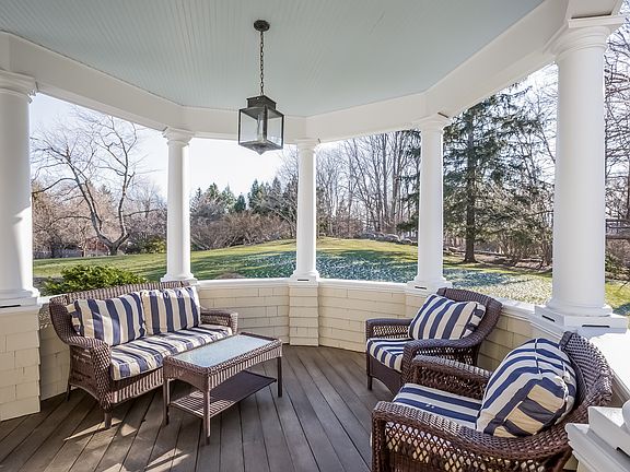 Extraordinary parklike property, beautiful pool setting. Very sophisticated architecturally designed home with great open porch, terraces, detailed library, gourmet kitchen, wonderfully renovated master bath with charging station and coffee bar, many extras and improvements including energy efficient boiler, well pump, pool heater. 3rd floor playroom with plumbing for a bathroom. LL with entertainment center, gym, bar, bath and cedar lined sauna. For buyer with discriminating taste.