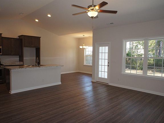 Beautiful Hatteras floor plan under construction in the new Ocean Palms community, scheduled to be complete in early February. This terrific open floor plan, 3 bedroom, 2 full bath home will come standard with vinyl flooring in the family room, kitchen and dining area, under the soaring vaulted ceiling, and comfortable carpet in the bedrooms. Stainless appliances, staggered-height stained birch cabinetry and a convenient breakfast bar combine to give you the wow factor you're looking for, and abundant recessed lighting plus two large windows in the adjacent dining area flood the room with light. A French door in the great room leads to the covered rear porch and the large separate patio beyond. The spacious master retreat features a long vanity, an oversized walk-in shower, plenty of storage in the linen closet and a huge walk-in closet, plus a tray ceiling. Two additional bedrooms and a full bath are tucked off on their own hallway, for privacy. All of the homes in Ocean Palms come standard with the luxury of natural gas (tankless water heater, gas heat, and gas range). The two car garage is completely trimmed and painted, and a floored attic storage space is accessed by drop-down stairs. Ocean Palms is conveniently located near shopping, restaurants, schools and world class medical offices and hospitals, and only a short golf cart ride to Surfside Beach's gorgeous beach and the beautiful Atlantic Ocean. Other floor plans and inventory homes may be available, and CUSTOMIZATION OF FLOOR PLANS IS POSSIBLE!!! Community Pool and Cabana Coming Soon! Photos are of a completed, similar home and may have different features.