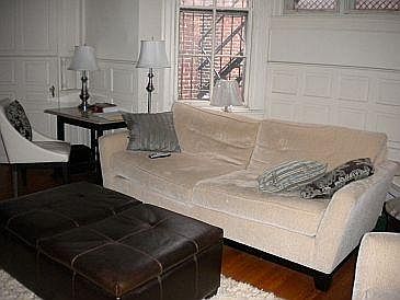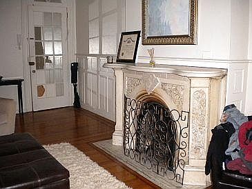 This spacious unit has high ceilings with elegant molding. There are two working fireplaces, built in shelves and cupboards. The separate kitchen has plenty of counter space, cabinets, and ceramic tile floors. Hardwood floors throughout the rest of the apartment. There is also a fire escape landing outside the kitchen, which could be used for a hibachi or plants. Owner pays gas heat and hot and cold running water. Tenant pays electricity. No smoking.