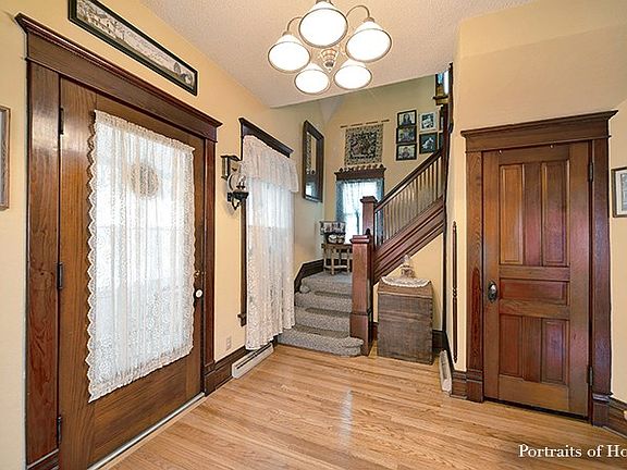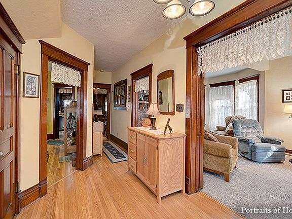 Incredibly Charming! This beautiful home features many modern updates while thoughtfully preserving those special vintage details we love, such as gleaming hardwood floors and trim, a built-in china cabinet in the kitchen, beamed ceilings, a corner brick fireplace, an enclosed front porch and a spacious three season sunroom. The double lot from street to street features a 2 car garage with an attached 20x20 workshop (with a wood-burning stove) and a 2nd floor loft with pull down stairs, along with a generous patio and plenty of room to relax or play. The first floor features a foyer entry, formal dining room, living room with a fireplace, an eat-in kitchen and a full bathroom. Upstairs you'll find 4 bedrooms, each with hardwood floors! New/Newer: dishwasher, water heater, water softener, kitchen floor, roof (8 years old), and basement shower room. Plus, a hi-eff American Standard furnace & A/C, April Air humidifier, and plenty of storage and lots of nearby parking. So much to love!
