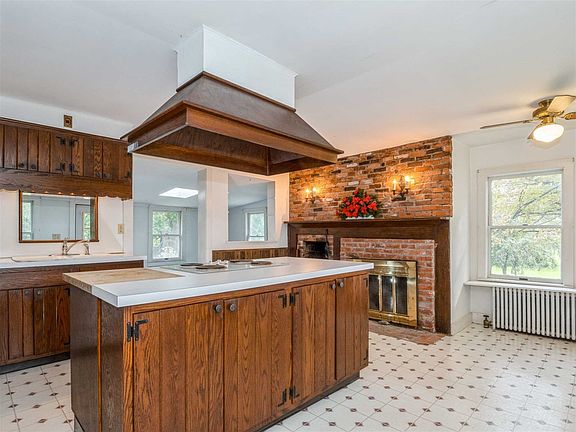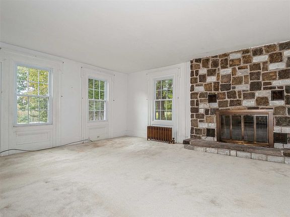 Charming Colonial Farmhouse situated on 7 sprawling acres has 4 bedrooms/2 bathrooms, gleaming wide plank hardwood floors and 2 fireplaces. Unique craftsmanship is evident from the original iron work on the double entry doors to the breathtaking staircase sporting a mahogany banister and large sitting area at the top. Family and friends will be drawn to the beautiful stone fireplace in the spacious living area. The kitchen is warm and inviting with an island cooktop and brick fireplace. Formal dining room includes built-ins and large gorgeous windows allowing for beautiful sunlight. Truly a must see!
