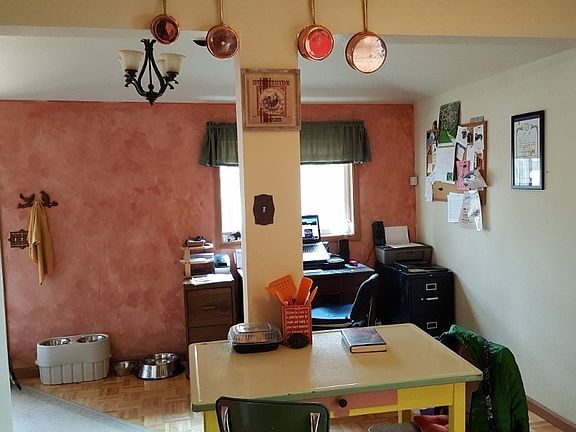 Hardwood floors. Wonderful woodwork with built-ins, beautiful features make you feel at home in this Victorian era charmer. Updated master bath on main level. Large kitchen with tons of cabinets, tile back splash and extra room for office or other work space overlooking the lovely fenced in back yard. Huge deck in back to enjoy the outdoors. One car garage w/parking for 2 more cars. Three season porch adds to living space. Close to park and schools.