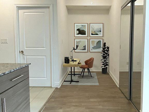 Welcome To The Luxury, Energy Efficient "Eden Park 2" Located In One Of The Most Sought After Neighbourhoods Of Markham. This Sun Drenched 1 + Den Unit W/ Clear South Facing Views Has A Practical and Open Concept Layout. Featuring Quality Finishes With 9 Ft Ceilings, Laminate Flooring Throughout, & Granite Counters. Good Sized Bedroom with Large Window Looking Out To The Balcony. The Den Can Be The Perfect Home Office Space. Well Managed Building With Low Fees & Amazing Amenities Including A Gym, Indoor Pool, Games Room, Party Room, Library, & 24 Hour Concierge. Located Within Minutes To Parks, Schools, Shopping, Restaurants, Banks, Hwy 7, 404, 407, Public Transportation, & Many Amenities For All Your Daily Conveniences! *Furnished Photos Are Virtually Staged*