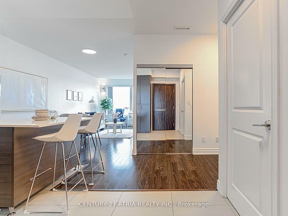 Bright & Spacious Condo in Eden Park II A LEED-Certified Building! Welcome to Eden Park II, a highly sought-after LEED-certified building designed for energy efficiency and modern living! This beautiful 1-bedroom + den condo is hitting the market for the first time, offering a bright and inviting space with south-facing exposure. Freshly painted and featuring engineered laminate flooring throughout, this unit has an open-concept layout with a spacious living and dining area, large windows, and plenty of natural light. The upgraded kitchen boasts quartz countertops and stainless steel appliances, while the bedroom includes a large closet and a walkout to the balcony. The separate den is perfect for a home office or extra storage. Youll also enjoy top-notch building amenities, including: ->24-hour concierge for security and convenience, ->Indoor swimming pool & sauna for relaxation, ->Fully equipped fitness center, ->Party room & visitor parking. Located in a prime Markham neighborhood, you're just steps from Leitchcroft Park and Ada Mackenzie Park. A short drive takes you to Walmart, Shoppers Drug Mart, T&T Supermarket, banks, restaurants, bakeries, gyms, and public transit.Fraser School Ranking: High School St Roberts Catholic School 10/10 Thornlea SS 9/10 Elementary School Doncrest 9.2/10. This is a fantastic opportunity to own a condo in a well-maintained, eco-friendly building with modern comforts and unbeatable convenience. Dont miss outcome see it today!