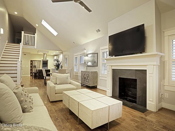 Truly the best of all worlds, this like-new townhome style condo is loaded with all the finish details you could possibly want yet located in the heart of desirable Crescent Hill! One of the greatest features is perhaps the 2-car garage, which is rare find for this market area. Reconstructed in 2008, this building is home to only four units, and it's extraordinary to find one with the vaulted ceilings built to the rooflines. Upon entering this home, you'll be wowed by the modern open layout of great room with soaring ceiling, gorgeous hardwood flooring that continues throughout, charming built-ins, decorative fireplace (not currently operational) and French doors that lead to the covered porch--perfect for Alfresco dining or lazy mornings sipping coffee. A spacious dining area separates the living space from the gourmet kitchen which is simply fabulous! An abundance of cabinetry is finished in quartz countertops, and the center island provides lots of prep and serving space for your guests. Entertaining will be a cinch with the additional wet bar which offers an under counter beverage refrigerator. There is also an adjacent pantry with solid shelving, which leads to a huge laundry room with lots of additional storage and hanging space. Guests will enjoy the privacy of the bedroom on this level, which offers two closets, lots of natural light and is adjacent to the full bathroom with vintage furniture vanity and subway tile finishes (also accessible from the hallway). The sweeping staircase leads to a large open loft/den, which is ideal for an office or second living space, and because there is a closet, it could easily be enclosed into a 3rd bedroom. The primary suite is truly remarkable, featuring vaulted ceiling lines, lots of natural light, three closets (one is a walk-in with custom built-ins) and a spa-like bathroom that is truly a lap of luxury! The extended double vanity is finished in marble and offers lots of storage, plus there is a walk-in shower and garden jetted tub. If eight closets aren't ample storage, you'll love the secured private storage room in the basement, perfect for bicycles, holiday decorations or any other treasures. Upon exiting the unit on the rear side of the building, you'll love the easy access to the 2-car garage. Owner really hates to leave this home after doing so much to improve it. Updates since purchase include new quartz countertops, refrigerator, carpeting in bedrooms, washer and dryer, beverage refrigerator, both toilets replaced, master bath vanity replaced, plantation shutters installed, water heater (2018), painting and so much more! This is the location and lifestyle you've been waiting for, with easy access to the parks and all the conveniences that Frankfort Avenue has to offer! A showing is a sale, so hurry over to see this one!!