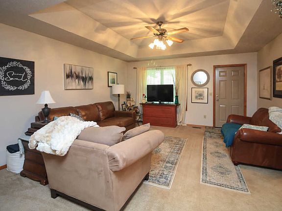 Three bedroom home for sale! Nice curb appeal with a brick front and covered patio. There are tray ceilings in the living room, master bedroom, and dining area. A new roof was put on in December 2019. Peaceful, privacy fenced back yard with garden areas and a patio. The back yard also has a storage shed. Located in Willard school district.