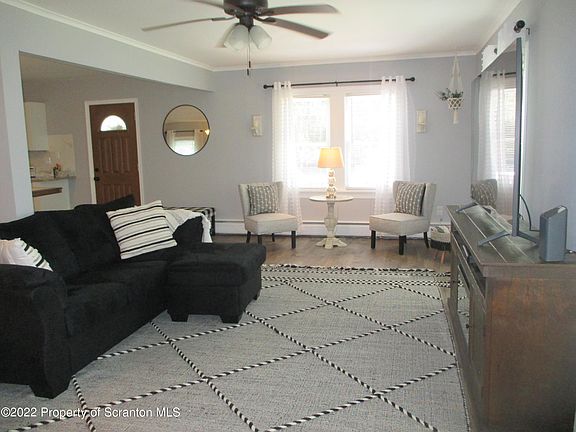 Completely renovated in 2021 with with modern Farmhouse finishes! 3-4 bedroom, 2 full bath home with detached shed with loft in Abington Heights School District. Open floor plan on Main Level. Stainless steel appliances, granite counters. Den/office or possible family room on second level off Kitchen ideal for Home Office! Center hall on second level. Large Master Bedroom and small deck off second bedroom. Luxurious flooring by Giant throughout. New sewer system. Newly surfaced extra wide driveway. And more!, Baths: 1 Bath Lev 1,Modern,1 Bath Lev 2, Beds: 2+ Bed 2nd, SqFt Fin - Main: 900.00, SqFt Fin - 3rd: 0.00, Tax Information: Available, Formal Dining Room: Y, Ultra Modern: Y, SqFt Fin - 2nd: 800.00, Additional Info: All showings MUST be after 12 noon to accommodate Tenants' work schedule. Thank you.