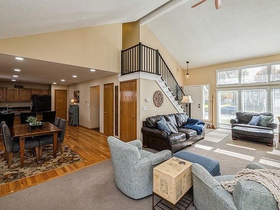 Adorable Grimes 2 Sty w/lots of charm! Family rm w/vaulted ceiling, new carpet, trendy ceiling fan and lots of natural light w/white wood blinds, and large eat-in area w/wood flrg. Sit and enjoy your coffee in the cute 3 season rm w/french doors and views of the mature trees in the fenced-in backyard. Kitchen has granite ctrs, pantry, and newly updated ceiling w/ daylight can lights. 1/2bath/laundry rm is located near the kitchen and garage access. As you head to the 2nd lvl there is a new railing, carpet, LVP hallway flrg, new doors, and trim. Owners suite is large w/vaulted ceiling, new fan, lots of closet space, and 3/4 bath w/ceramic surround shower/glass door, and ceramic flrg. 2nd/3rd bdrms are nice sized and access to the full hall bath, and linen closet. Finished LL w/fam rm, gas stove htr, and storage. HVAC 2020, Roof 2021. Ask your Realtor for the improvement list, and don't miss touring this fabulous home in a family friendly neighborhood near shopping, trails, schools, and restaurants. All information obtained from seller and public records.