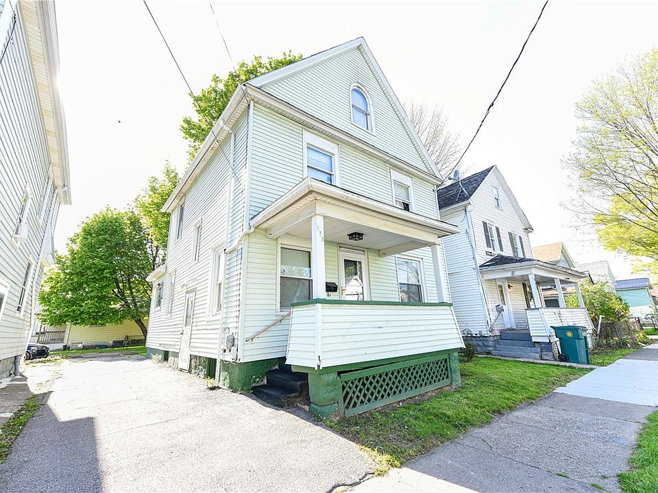 Great opportunity for rental income that is currently rented with this wonderful 2 story home featuring a covered front porch that will easily fit a couple chairs, a living room with ceiling fan and dining room with ceiling fan, built in shelving, hardwoods and plenty of windows. There is an extra family room or office area and a good-sized kitchen with a pantry and appliances included. Upstairs there are 3 good-sized bedroom with ceiling fans and carpeting and a full bath. The basement gives you lots of room for storage and there is a semi-private tree-lined backyard. This home is a great find for the price!