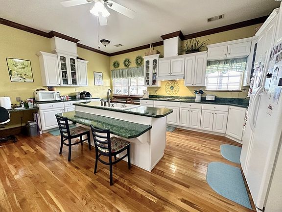 Come and view this beautiful country home with tons of space for the whole family! Main home has 4 formal bedrooms and could be easily converted into 5 bedrooms. Additional mother in law suite with one bedroom and one bathroom. Large open floor plan with beautiful kitchen with island, dining room, and spacious living room. Hardwood floors through main living area. Home boast 10 foot ceilings throughout first floor. Tons of storage. Huge wrap around deck around the whole house that is perfect for rocking chairs. Three car covered carport. 60X30 Metal barn with 20x20 shop. This 5.94 acre lot is ready for new owners to put in a pool, garden, or additional buildings. Don't miss this one! Call today to set up a private showing!