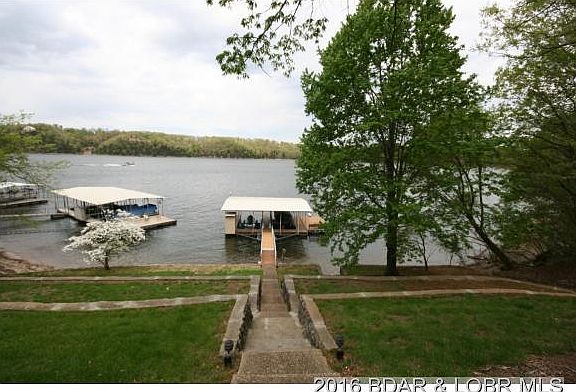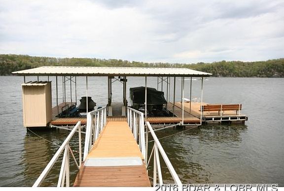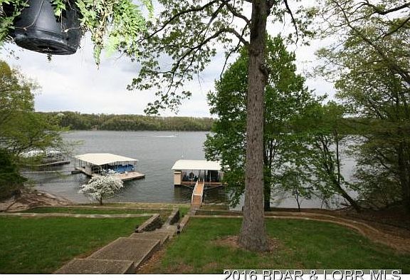 Meticulously maintained lakefront house in Linn Creek and located at the 29 mile marker; featuring 3 bedrooms, 2 full baths, 1 half bath, 2 oversized decks; 2 wood burning fireplaces, lower deck covered, gorgeous landscaping, 2 well dock with 12x28 slips, dock locker, 12x24 swim platform, 2 hoists (2,000# & 6,000#) and new ramp, oversized 2 car garage that is 26x26 and offers a 10x26 storage attic with 5â tall ceilings. Located at the end of a private road this house features loads of privacy and a Fantastic view of Boones Bluff and the Tan Tar A Fireworks. Updates in 2008 include roof, Master suite, carpet, tile, AC unit and skylights w/UV protection. Tiered backyard provides plenty of space for play and a gentle slope from house to dock