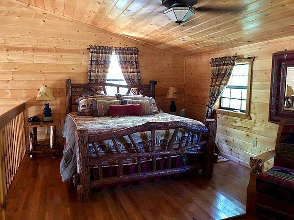 This beautiful log cabin with mountain views and privacy has had many improvements! New staining and sealing of logs,new central heat and air, decks have been redone with new railing and stain, roof repaired along most everything on their repair list. The seller has thousands of dollars in drive way redirection and repair.