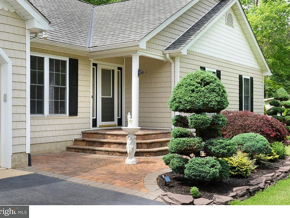 R-10508 Serenity now! This immaculately maintained custom ranch home sits on an acre in a peaceful country setting, yet is minutes from town and Route 1 access. As you approach the home, you will be wowed by the beautiful landscaping, well-manicured lawn, EP Henry brick paver walk-way and steps, and the lovely water fountain. Landscape lighting makes this home picture perfect at night! In the sprawling backyard, you will enjoy the sights and sounds of nature from the 16' x 30' deck. It's the perfect place to grill, entertaining, or simply relax and enjoy the solitude with your favorite drink. It's constructed with low maintenance Trex~ material and has a retractable awning and wall mounted speakers. When the weather's not great, move the party indoors! The open floor plan with large rooms makes this home great for entertaining. The bright FR features lots of windows for taking in the gorgeous backyard views, a vaulted ceiling, a fantastic sound system with built-in Klipsch~ speakers, and a paddle ceiling fan that provides a unique focal point. The oversized dining room features hard wood flooring and a soap stone wood stove with a brick hearth. The kitchen was recently updated with additional cabinets, quartz countertops, a striking metal and glass mosaic back splash, two pantries, a bar area, and pendant lighting. Stainless appliances including five burner gas range, over-the-range microwave, and large refrigerator with French doors will make meal prep a breeze! The tile floor has a custom designed insert in the breakfast nook. In the master bedroom you will find views of the tree-lined back yard, a walk in closet with conveniently located washer and dryer, and a distinctive bathroom for a spa-like experience. Jacuzzi tub, open air shower, unique double bowl vanity and vanity lighting, and a private water closet all with gorgeous tile. No basement? No problem! The attic is stick framed and floored, offering plenty of storage space without the hassle of a damp basem