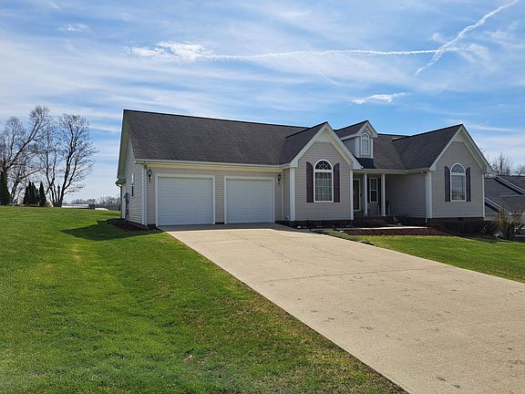 Location and Convenience ! This Home offers Primary Bedroom Suite with tray ceiling. Primary Bath offers step in shower, whirlpool tub, and walk in closet. It has split- bedroom floor plan, with 3 Bedrooms and 2 full bathrooms. Separate Dining Room with Cathedral ceiling. Kitchen has Custom made solid wood cabinets. Floor coverings include Oak Hardwood in Kitchen, Dining Room, utility room, and entrance foyer. Bedrooms have carpet, with bathrooms having vinyl and water resistant Tile. Two car attached garage. Outside it offers screened in covered deck area, plus a large uncovered deck area, with natural gas grill. A 10 x 12 Metal insulated panel storage building. A nice garden area if desired. This home is only 2.5 miles from most shopping areas on the West side of London. Seller is Owner Agent.
