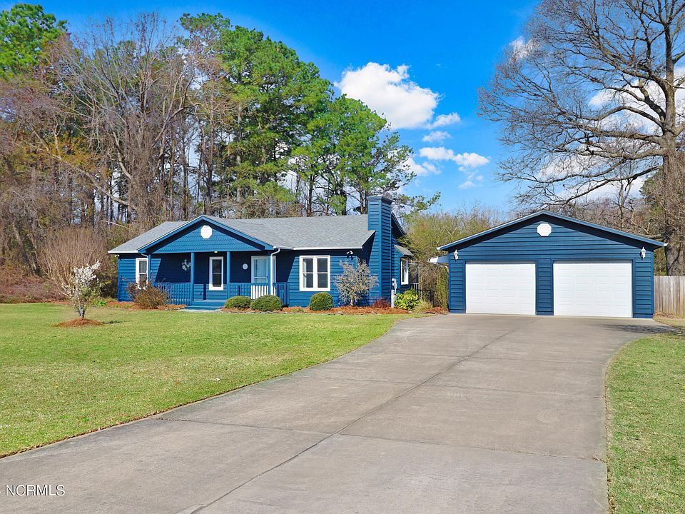 COUNTRY CHARMER! Situated on approximately .95 acres of unrestricted land, the exterior has been freshly painted to exude a like-new feel. The detached 2-car garage provides ample space for parking and storage.