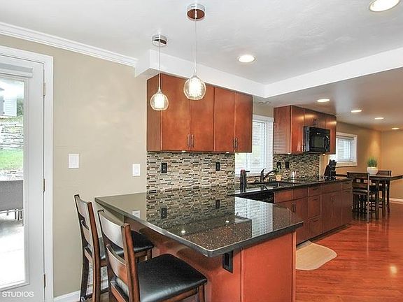 Nothing missed in this fully renovated 3 bedroom Multi-Level! Inviting main floor offers an open floor plan with custom stone fireplace views from living room, dining room and kitchen. Featuring custom cabinetry, granite counter-tops, double oven, peninsula, breakfast nook and powder room. Off dining room leads to a private aggregate patio with double stone walls, new wood fence and storage shed. Custom master suite with walk-in closet, pocket doors, and spa-like bathroom. Full bathroom beautifully appointed with Colucci tile surround. Bright finished game room with over-sized storage with epoxy floor. All mechanicals like new, Furnace & A/C- 2012 , Roof - 2013.