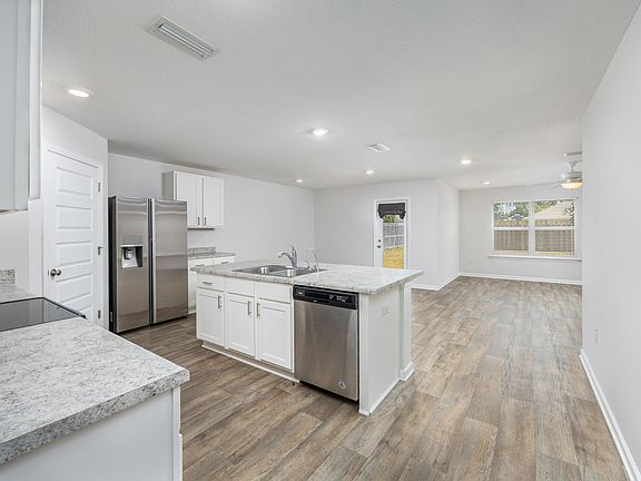 Step into a world of endless possibilities in this beautifully designed 4-bedroom, 2-bathroom home. With 1768 sq. ft. of thoughtfully crafted living space, this single-story gem in Freeport, FL, is the perfect canvas for your dream lifestyle.The heart of the home is a stunning open-concept kitchen and living area, where culinary adventures and family gatherings seamlessly blend. The kitchen shines with sleek white cabinetry, stainless steel appliances, and a generous island, ideal for casual dining or entertaining guests. Warm wood-look , Laminate flooring flows throughout, adding a touch of natural elegance to every room.Retreat to the spacious primary bedroom, a true sanctuary with ample space for relaxation and rejuvenation. Large windows in the bedrooms and living areas flood the home with natural light, creating an airy and inviting atmosphere.