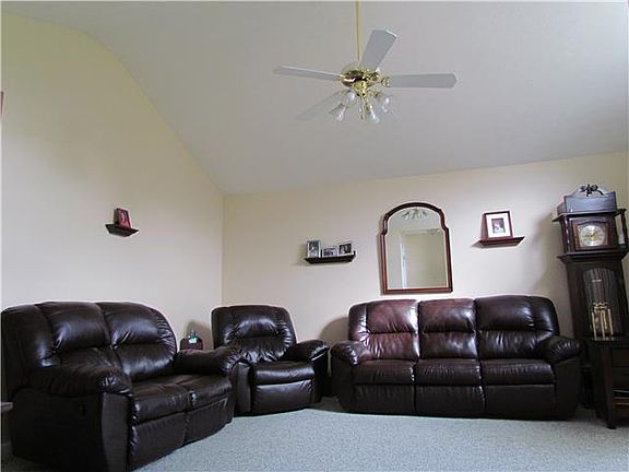 deck and front porch to enjoy the wonderful 1 acre setting. Living room with vaulted ceiling,laminate wood floor and big window to view it all out of. Master with full bath and good size bedrooms. Come look and fall in love with it.