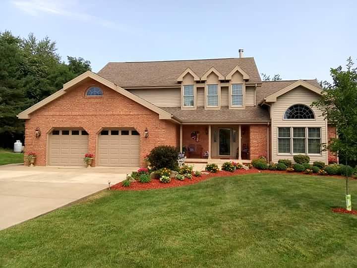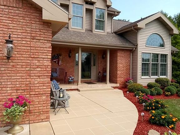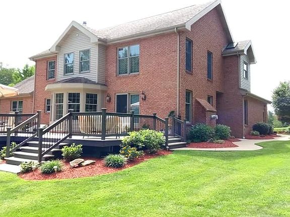 Charming architectural features and dramatic interior spaces give this home a timeless beauty. The stylish gables, classic dormers, handsome freshly painted front porch, and other traditional elements enhance the well-established appearance. Inside, you'll find large and flowing spaces punctuated by careful detailing. Visitors are greeted by a spacious entry with a shapely staircase and 900 square feet of elegant Italian porcelain tile. First floor features two large living spaces, a formal living room-dining room, a family room which is outfitted with a fireplace and opens to the kitchen area, glass-clad circular kitchen nook, powder room and laundry room. The home also features a 26x26 attached double garage, 4+ bedrooms, and 3 1/2 bathrooms. Master Suite features cathedral ceilings both in the spacious bedroom and luxury bath. The home also has a finished walk-out basement, 2 newly stained patios and a 40×18×16' bi-level deck. It's a custom built, meticulously maintained quality home that sits on 4.3 acres. 3,876 total living space.