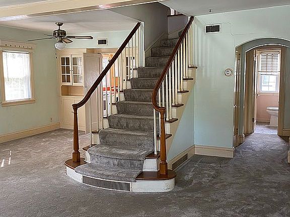 Two story home on corner lot; first floor features living room with WBF, dining room with built-ins, kitchen, den and half bath. Gorgeous staircase leading to second floor which features large main bedroom, two smaller bedrooms, hallway with cedar-lined closet and window seat, and full bath. Tons of storage space throughout. Walkout basement includes family room, laundry room, work room and access to one car garage.