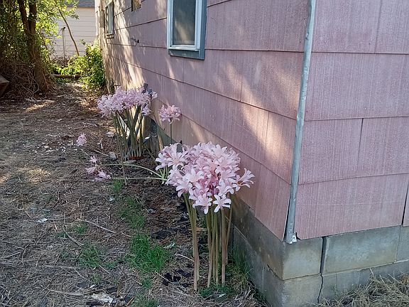 Pink House with pink flowers, fresh paint,new shower! No fence in back yard. Hard wood floors. 1 year lease, 500 each dog