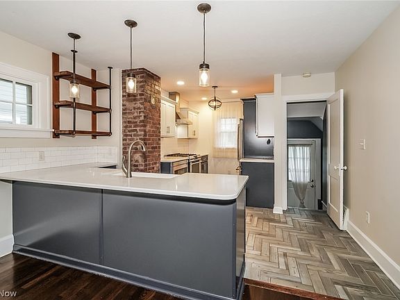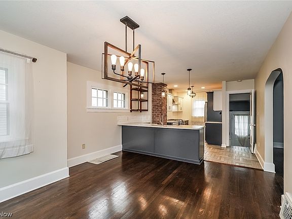 Fall in love with this updated Colonial home in a quaint N. Canton neighborhood! Enjoy an inviting front porch, cozy great room with original hardwood floors, and a spacious eat-in kitchen with stainless steel appliances and Quartz countertops. Upstairs, find two bedrooms with ample storage and an updated bathroom. The finished basement adds over 400 sq ft of living space, including a third bedroom and master bath. Relax on the large stone patio or front porch overlooking West Park. The 2-car garage provides extra storage. Conveniently located near highways, shopping, and Dogwood Park. Recent updates include a new roof, water heater, sump pump, HVAC units, ductwork, furnace, and air conditioner. This home is a must-see!