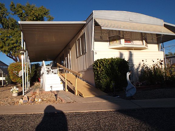 Very Nice 2 bdrm home with 2 full baths. Has lots of storage, All aluminum 8X10 storage shed. covered porch. Beautiful 55+ park. The kitchen has been redone with all new cabinets, 5 burner stove/large oven, dishwasher, fridge, built-in microwave. Fairly new central gas furnance and central air conditioning. Insulated, drywalled and tectured including ceillings. off street parking for 2 cars. Lots of amenities & activities. You have a base lot space rent of under $500. BUT, for under $600 you get: lot rental, trash, water, sewer, city tax. Use of clubhouse, swimming pool, spa, library, billiards. PETS are allowed! Great neighbors, Close to Everything including great restaurants, shopping, doctors & hospital. Quiet adult senior mobile home community. LOW low property taxes of only $105 a year! Call: (928) 254-8376