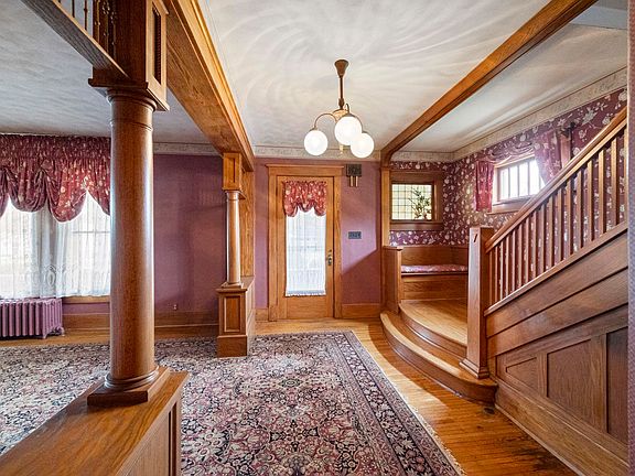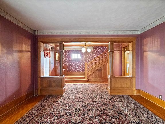 This stunning 4-bedroom, 2-bathroom, 3-story historic home blends classic elegance with modern comforts. Located on a spacious .79 acre corner lot, this home showcases original woodwork, gorgeous hardwood floors, and double hung-windows that fill the space with natural light. The home features a double staircase, two ventless fireplaces, and custom cabinetry with quarts countertops in the eat-in kitchen. French doors lead to a charming living area, and the original stained glass adds a timeless touch. As an added bonus, it's also been updated with brand new electrical wiring. Outside, enjoy a large covered front porch, and a sizable deck perfect for entertaining around the above ground pool. The property also includes two detached garages, hot tub hookup, and plenty of outdoor space for relaxing. Just a short commute to Lake Shafer, Lake Freeman and the iconic Indiana Beach amusement park. This home is a rare gem that offers both historic charm and modern amenities in the heart of Francesville. Don't miss this opportunity to own a piece of history.