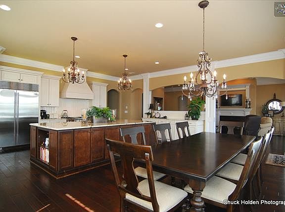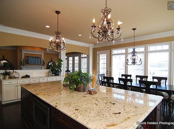 • Kitchen: Cabinets-Wood-White, Counter Tops-Granite, Eat In, Hardwood Floor, Pantry, Island