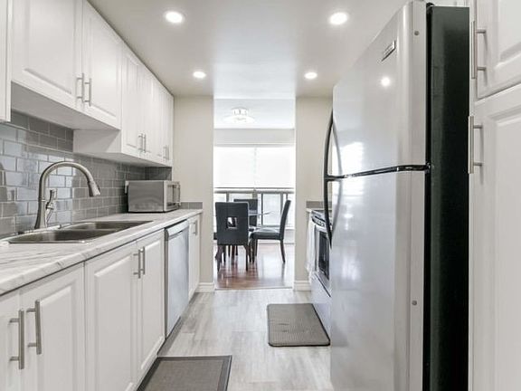 New Immigrants Welcome Crispy Clean & Upgraded Unit! Beautiful 2 Bed + 2 Full Bath Corner Suite Offering A Spacious & Functional Layout With Sun Filled South/East Views. Move In Ready, Freshly Painted & Boasting Laminate Flrs Through Out, Feat. A Fully Renovated Kitchen W/ Stainless Steel Appliances, White Cabinets, Back Splash & Pot Lights. 2 Updated Bathrooms 2 Large Bedrooms, Master With A Full 4 Pcs Bath, 2 Large Closets. All New Roller Shades.