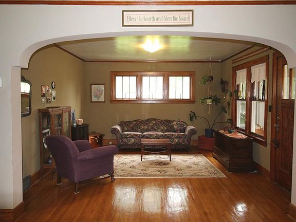 Unbelievable character matched by spectacular landscaping & a huge double lot! This beautifully maintained character home features original woodwork, gorgeous real hardwood floors, a welcoming front porch with tons of natural light, a spacious kitchen with walk-in pantry & newer countertops, formal & informal dining areas, open concept living room to formal dining with arched doorway, a bathroom on each level, a main floor bedroom, & 3 bedrooms up! The lower level is partially finished with a knotty pine tongue & groove family room, an open laundry area with sink & an additional area you could finish for a larger family room. All of this situated on a huge double lot with a fenced in yard, inviting patio & sitting area, beautiful garden & flower beds, a well pump for outside watering, a 2 stall garage, & garden shed. Additional features include a new furnace & AC in 2019, granite picnic table, large closets & lots of storage, great back porch/mud room, & a convenient location.