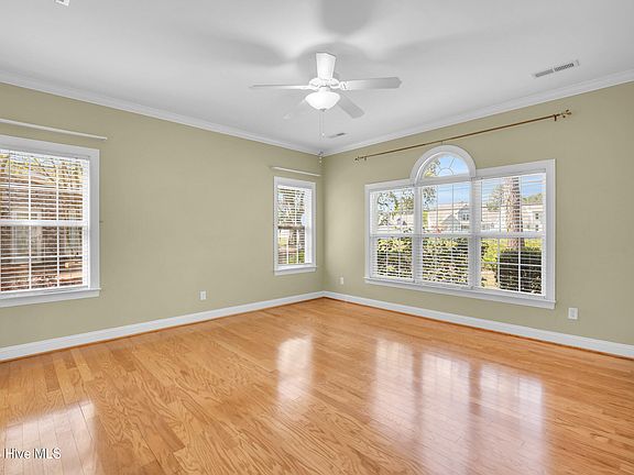 The cozy living room features a natural gas fireplace, creating a warm and inviting atmosphere. Just off the main living area, a bright sunroom overlooks peaceful pond and nature views, perfect for morning coffee or quiet evenings. A versatile FROG adds extra space for a home office, guest room, or hobby area. You'll love the details that make daily living easy—Maytag washer and dryer, refrigerator, and crown molding throughout, plus a 2-car garage for convenience. Major systems are taken care of with a new roof in 2023 and natural gas water heater and furnace. Outside, enjoy the lovely landscaped yard maintained by the HOA, ideal for relaxing outdoors. Situated just 12 miles from Carolina Beach, 11 miles from Wrightsville Beach, and only 1.5 miles from shopping and dining, this home offers the perfect blend of convenience and coastal charm.