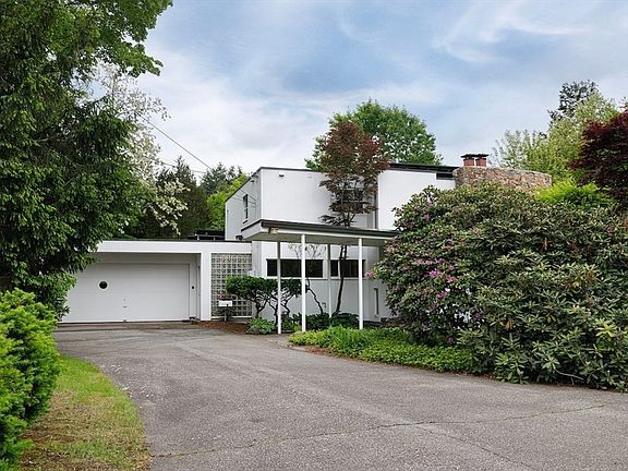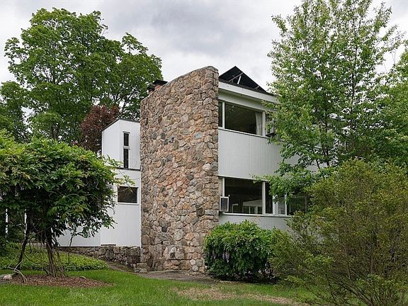 International-style Modernist home designed by Bauhaus co-founders Walter Gropius and Marcel Breuer, situated along the Reservoir. The thoughtfully designed 2004 addition expanded the kitchen and created a family room with an open-concept plan. A towering fieldstone wall, an unmistakable Breuer trademark, intersects with the vertical clapboard recognizable from Breuer’s own home and the Gropius House (now a museum) in Lincoln. A covered walkway welcomes you into the foyer. A distinctive curved stairway with a serpentine turned wooden balustrade. 3 bedrooms + 2 full baths upstairs, plus a 3rd bath and office or potential bedroom (with closet) on the main floor. Attached 2-car gar, 3-season room + patio, stone garden designed by Gropius, and trails to the reservoir, on about an acre of land. A golden opportunity to become the next stewards of this property of rare pedigree. Close to Cushing Park, under a mile to Rt. 9 (shopping, restaurants), & quick access to highways & commuter rail.