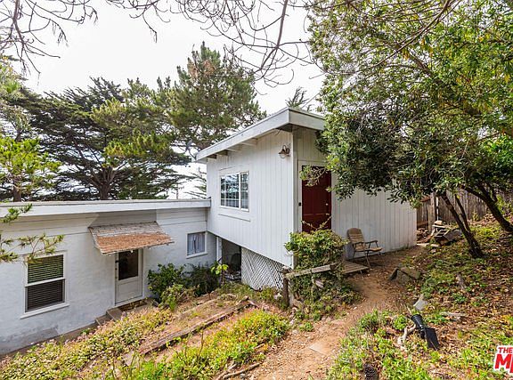 This 1930's home has been family owned since 1934 and is in need of TLC. It is only 1 block from the beach, and one of the largest lots in Park Hill, Cambria. It sits on almost an 11,000 sqft corner lot. This 2 bedroom 2 bath home is built on solid bedrock, soils engineering report was done in 2008 for a remodel/addition. In need of TLC this Home features full ocean views, gorgeous Cambria pines, walkways, stacked rock retaining walls from the 1940's. with lots of storage, workshop area and laundry. Main home has a sun-room with new deck to enjoy the views, 3/4 bath, galley style kitchen that has been remodeled. Living room with fireplace. Some floors are the original maple flooring. Attached with a separate entrance is the "tree house" sitting up above main home in the trees is a large studio style bedroom w/wood floors, antique wood burning Swiss stove, remodeled bathroom w/Onyx tile around black soaking jet tub, granite counter tops, tile floors. This is a once in a lifetime opportunity