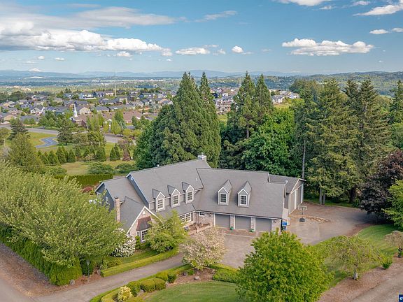 Nestled on 1.35 acres in W Salem Hills, this exquisite custom-built estate boasts breathtaking mountain & city views. 6,778 SF w/ 4 bdrms, office, Theater rm & plenty of flex space. Primary bdrm w/ fully remodeled ensuite. Fireplaces in the LR, FR, office, & Primary. French-inspired kitchen boasts a butcher top center island & Sub-zero frig. Basement Wine Cellar. New deck w/ louvered pergola for year-round enjoyment & beautifully landscaped grounds. 3-car grg & addtnl 36x30 shop w/ 12' doors. County Taxes!