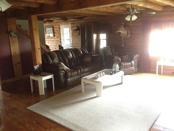 If you've been looking for a log "cabin" with a 40x30 pole barn, do we have one for you! Featuring 4 bedrooms, 2.5 baths and three levels of living space, you can unpack and spread out. Sitting on a beautiful 1 acre lot with mature trees, you will see the unique features from the moment you walk up the new steps to the 28x8 covered front porch and step over the threshold. There is a new screen door, new paint throughout, wood floors, a large pantry in the kitchen with it's exposed beams, new fixtures and newer (2016) appliances. The lower level shines with it's concrete bar, gas log fireplace and wine chiller. Walk out the back door onto a 12x40 patio. The 40x30 pole barn has a 8x20 covered patio, 10' ceilings, a wood burner and water available, it's perfect for projects, storage or just hanging out. There is a 12' lean to on the back side of the pole barn. This property has something for everyone! Make your appointment today!