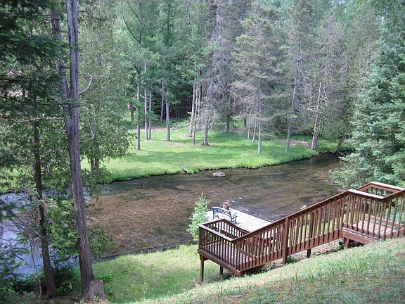 Fantastic 2 bedroom 1.5 bath home on over 330' of frontage on The Main Branch of Big Creek. Enjoy views of the river from the family room inside or deck and dock outdoors. There are three garages to store your cars and much more, one of them can be driven thru, great for snowmobiles and ATV's. All this on 4.4 acres that border Huron National Forrest.