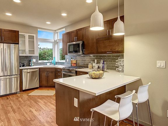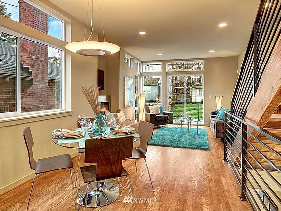 New Magnolia modern townhome. Open layout w/walls of glass & lots of light. Beautiful designer finishes. Rich hardwoods, custom tile work, sleek fireplace, custom floating staircase. Gourmet kitchen w/quartz counters, high end cabs, stainless appliances. Large top floor master suite with spa like bath. Huge rooftop deck has expansive views, extra storage for bikes etc. Off street parking included. Pre-wired internet and security system. Easy access to downtown, QA & Discovery Park.