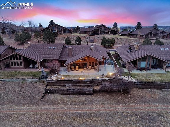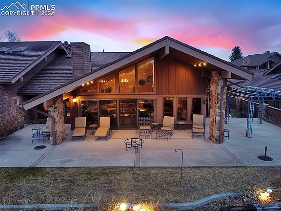 *COLOSSAL PIKES PEAK VIEWS!*BACKS TO GOLF COURSE*KISSING CAMELS*THREE CAR GARAGE*OPEN. SPACIOUS FLOOR PLAN*FIREPLACE* Don't miss this opportunity to live in this community of Kissing Camels. The mountain and Peak views are the most dynamic you can imagine. Enter through double doors to an extra spacious, open living area. Two coat closets at foyer. Built in wet bar and entertainment cabinets. Floor to ceiling, west-facing windows in owner's suite and living area. Three-sided, dry stack, fireplace faces kitchen, dining and living areas. Walk out access to covered patio from living, dining, breakfast and kitchen areas. Gourmet kitchen, granite counter, SubZero refrigerator, wall oven and gas cooktop. Owner's suite extends the length of the home, includes sitting area, 5 closets, 2 separate sinks and private bathtub. Basement was recently refreshed with new carpet, paint and baths. Two of 3 bedrooms have ensuite, full bathrooms. Third bath in basement has new, oversize shower. Endless space for entertaining and hosting guests. Basement has an area for wine room or storage, multiple bedrooms, flex rooms and storage. Large family room with built in entertainment center and wood burning fireplace. Two car garage is separated by a wall from 3rd stall, best used for golf cart. All furnishings are negotiable. This is a must see to appreciate!