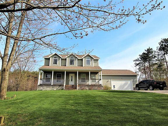 This 5 bedroom, 3 Bath home in Fruitport Schools offers over 2500 sq ft of living space and a detached 4 stall garage! Well maintained with many upgrades throughout. Formal living room with fireplace and formal dining room with hardwood flooring. Updated kitchen with white cabinetry, new countertops, stainless steel appliances, and a snack bar. Kitchen opens to the dining nook and family room. French doors open to the back deck. Main floor laundry, spacious bedroom and full bath complete the mai n level. A two-story foyer and staircase lead you to the second floor. Large master suite comfortably accommodates a king bed with room to spare, and two walk in closets! Master bathroom offers double sinks, a walk-in shower, and soaking tub. Three more bedrooms and another full bath complete the second level. The unfinished basement offers room to expand. Plenty of space for another rec room, two more bedrooms, and plenty of storage. Situated on almost 1 1/2 acres, this home is a must see!