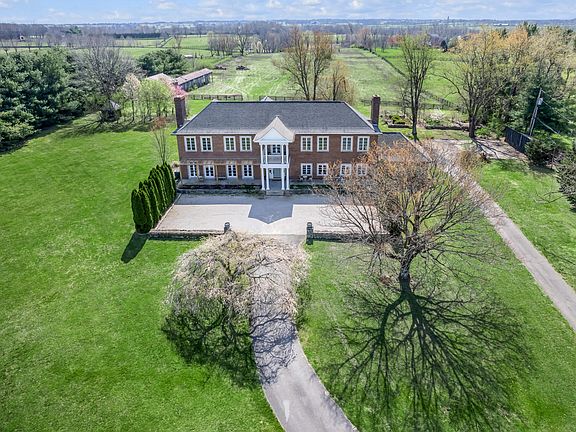 On Lexington's most prestigious road, nestled between the esteemed horse farms of Juddmonte & Overbrook, lies FairyHouse Hall, a gentleman's farm spanning 13 acres. Upon arrival, a long drive & drooping cherry tree open to a romantic French gravel courtyard, complete with a covered front porch & pergola sitting area. Once inside, experience the enchanting living spaces adorned with French doors that open to panoramic views of horse country. The home boasts a distinguished dining room, a gracious living room with a cozy fireplace, and a spacious chef's kitchen ready to entertain with dining space for ten surrounded by windows. Then venture to find the first-floor bedroom with a bath en suite, a poker room with a Murphy bed, a butler's kitchen, and a versatile party room/workroom lined in shiplap. Upstairs, the exquisite primary suite offers a covered porch with unparalleled vistas, while three additional bedrooms with en suite bathrooms ensure utmost comfort & privacy. Finally, a third-story bedroom with dormers provides a perfect cozy getaway. Originally built in 1969 and reimagined since, FairyHouse Hall epitomizes the elegance & pastoral beauty of Kentucky's Bluegrass region.