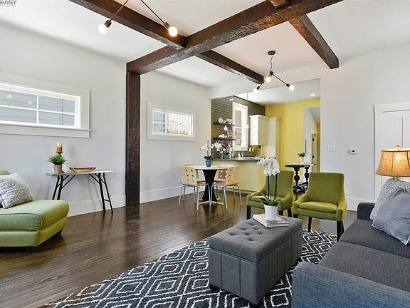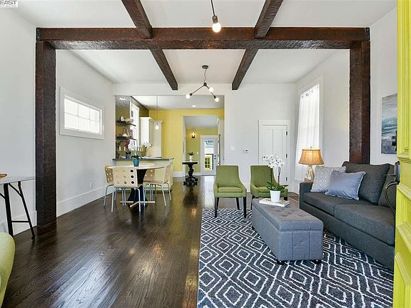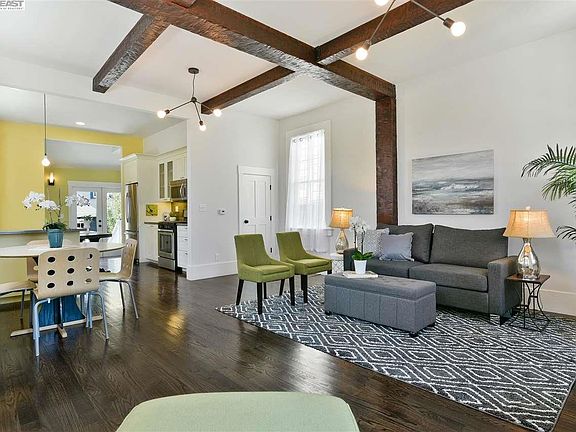 Welcome to 3250 Encinal Avenue, an amazing home that seamlessly combines modern amenities and contemporary designs with the classic character and elegance of a Victorian. Upon entering, you are greeted by the soaring box beams spanning from the ceiling down the living room walls, blending beautifully to the floors. The modern kitchen has an open design and contemporary feel. Stylish sleek grey countertops, contemporary tile backsplash with a nostalgic flair, and stainless steel appliances give a perfect finishing touch. A chic half-bath and French doors to the backyard caps off the first level. Upstairs are two large bedrooms each with handsomely-designed full baths, both with access to the laundry area. Large windows throughout the house drench the interior with natural sunlight. The beautifully-landscaped backyard with a separate artistao(TM)s shed exudes serenity and relaxation. Newer foundation, heating, electrical, and appliances provide peace of mind.