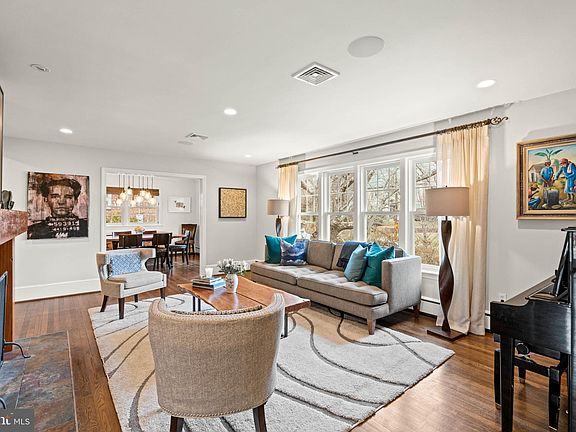 Sited in the tranquil Forest Hills neighborhood of Washington DC, this impressive residence offers an idyllic blend of comfort, style, and convenience. Surrounded by mature trees and a lush, expansive front yard, the house welcomes you with a beautifully landscaped walkway. Inside, the gracious entry foyer has hardwood floors and a double door coat closet, setting the tone for the elegantly appointed interiors. The living room is of generous scale with four oversized windows that bathe the space in natural light, complemented by a large central fireplace with a refined wood mantel and stone surround. The light-filled formal dining room, with its sophisticated crown moldings, flows seamlessly into a well-appointed, updated kitchen. Featuring a large center island, high-end stainless-steel appliances, two sinks, and ample cabinetry, it offers both functionality and style for everyday cooking and entertaining. Other notable features include a spacious pantry, beverage fridge, breakfast bar seating, and dishwasher. The kitchen opens to an expansive two-story family room, where floor-to-ceiling windows offer serene green views of the meticulously landscaped rear yard, and a beautiful stone wall with a wood-burning fireplace adds warmth and character. The main level also hosts a desirable library/office with built-in desk, bookshelves, and cabinetry, alongside two sunny bedrooms and two full bathrooms. The upper level is dedicated to a luxurious primary suite, complete with five oversized windows, an impressive walk-in dressing room with extensive built-ins, an additional large walk-in closet, and a spa-inspired bathroom with dual vanities, a skylight, freestanding soaking tub, and frameless glass shower. The lower level extends the living space with a sizable recreation room featuring a gas fireplace, wet bar, and wine storage, perfect for entertaining. A functional mudroom, gym, fourth bedroom, and two full bathrooms ensure comfort and convenience for residents and guests alike. The home also includes a two-car garage. Outside, the rear yard is exceptionally private, ideal for hosting gatherings with its large pool, hot tub, sundeck, multiple terrace spaces, built-in grilling station, and serene lily pond. The layered landscaping enhances the sense of privacy and tranquility, offering an extraordinary retreat within the city. Forest Hills offers a perfect blend of suburban tranquility and city accessibility, making it a highly desirable neighborhood for those seeking a peaceful residential area within reach of urban amenities. Its tree-lined streets create a picturesque environment, while residents can take advantage of parks and cultural institutions including the Hillwood Estate, Museum & Gardens, and the National Zoo. The neighborhood also has close proximity to the Metro, facilitating effortless commutes to downtown DC, and top independent and public schools. This unique combination of accessibility, community, and scenic beauty makes Forest Hills an attractive place to live for those looking to enjoy all the wonderful experiences and opportunities that DC has to offer.