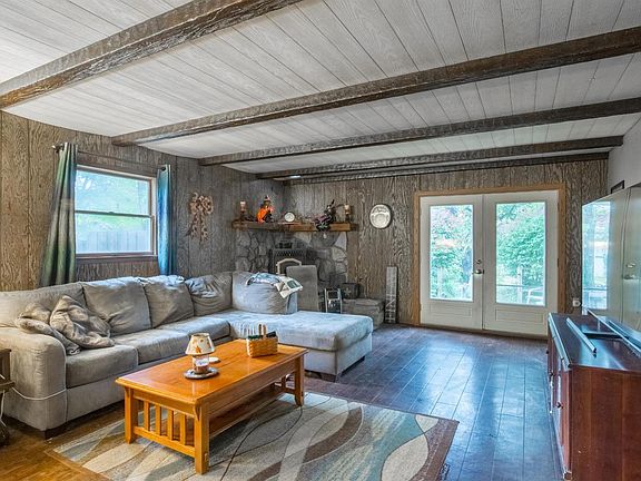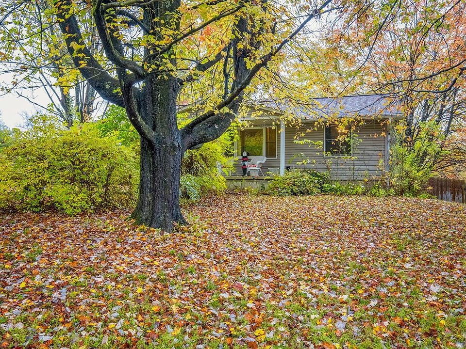 Enjoy country living at this ranch home with over an acre of private land. Bigger than it looks! Large family room w/ fireplace. Mstr w/ adjoining bath. Hardwood floors. Good sized bedrooms. Covered deck to enjoy the back yard. Fenced in lot w/ mature trees and a pond. Detached garage. Selling as-is. Needs TLC and updating. Priced to sell!