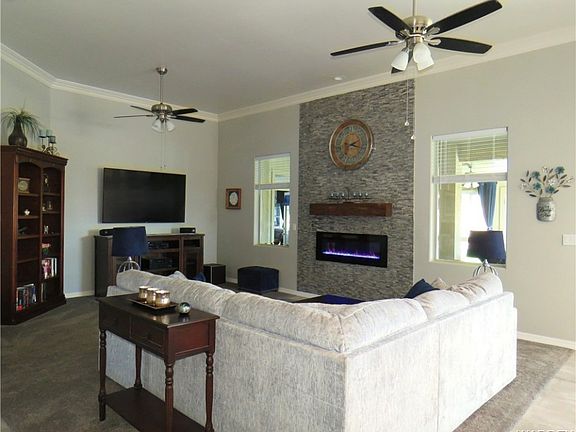Beautiful Home built in 2022 with Custom Upgrades Galore. The owners have poured their heart into making this the loveliest, most comfortable and well finished home in the neighborhood. This 4 bedroom, 2 bathroom home has a nice big living room with crown molding, electric fireplace, wood mantel, tile hearth & custom tile to the ceiling. Kitchen has white cabinets with lighting & pullout shelves, granite counter tops, custom tile backsplash, big corner pantry, upgraded stainless appliances, including refrigerator, nice big breakfast bar island with deep single bowl sink that opens into both the dining area and living room. Main bedroom is on the north side of the home with a walk in closet, custom vanity & lighting, quartz counter tops, dual sinks, walk in tile shower, separate toilet room and door out to the spa room. Guest wing is on the south side of the home with bedrooms 2 & 3 and a hall bathroom that has a tub shower comb. Bedroom four/office has one door to the hall and one to the entry way. Laundry room has washer & electric dryer, linen closet, upper & lower cabinets, granite counter tops and takes you out to the attached three car garage with auto openers, soft water loop and electric water heater. Home has variable height ceilings, smart thermostat, ceiling fans & blinds throughout, wired for solar, all electric now, but plumed for propane to the back patio, fireplace and range. Tile roof, rain gutters, front screen door, solar screen above front door. The enclosed back patio is separated into two rooms with ceiling fans and each side has heat & air (mini splits), this extra 752sf is not included in the listed 2,084 sf, but does total 2,836sf. The north side of the home has a concrete RV drive, 12ft wide gate, 30amp plug, water and dump. Back yard has a 10 X 16 shed with covered patio, pavers, artificial grass, block wall, stacked block planters with drip system and great Hualapai Mountain Views. Home sits on a .25 acre corner lot, in a nice homes only neighborhood with No HOA s ~ 3250 Monte Silvano Ave. Kingman, AZ