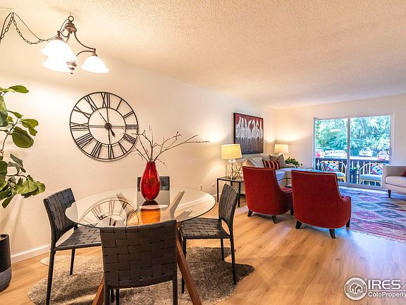 Updated south facing 2 BR first floor condo with private patio in an excellent location near bikeways and trails. Recent updates include fresh paint, new luxury vinyl plank flooring & new carpet. Full kitchen with stainless refrigerator & range/oven and all other appliances included. Pass through the window to open dining room. Spacious living room with new LVP. Newer sliding glass door to your own private ground-floor deck. No stairs to navigate with groceries or bike Two good-sized bedrooms. Windows have all been replaced with double paned vinyl windows throughout including the large slider. Full bathroom plus additional half bath. Lennox furnace and central A/C new in 2019. Delightful greenspace and grounds in this complex including outdoor grilling areas, beach volleyball court, and community gardens. But the shimmering jewel is the fantastic pool for relaxing afternoons. The HOA clubhouse is available for resident use as is the well-equipped fitness room & sauna. The HOA also covers the cost of water heating! Pet friendly complex with ample walking space on a private road with no-thru-traffic, and just a block to wonderful Howard Hueston Park. This large oasis features a dog park, playground, picnic area, skate park, and a peaceful place to relax. Fantastic location near the junction of 3 bike paths (Wonderland Creek, Goose Creek, & Foothills Bikeway) connecting you to Boulder Creek Trail and all of Boulder's well connected trail system. Comfortable ride to downtown, the University, and numerous other connected trails. Nearby RTD stops. Easy access to the nearby breweries, coffee shops, parks, Whole Foods, King Soopers, 29th street mall, and great Boulder Restaurants.