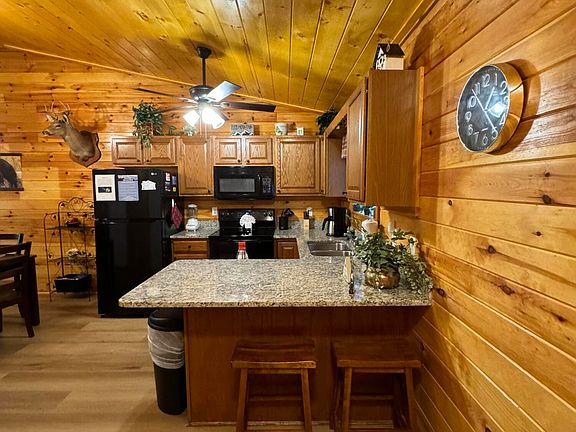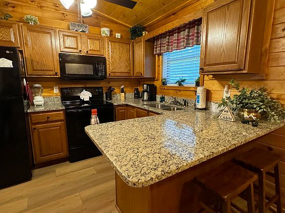 ''Newly renovated 1-bedroom, 1.5-bath investment cabin in the heart of the Smoky Mountains! The cabin is nestled in a wooded setting with a double-sided gas fireplace in the master bedroom. Owners have just added beautiful LVP flooring throughout the home. The kitchen offers granite countertops and an eat-in dining area. The living room features a stacked stone fireplace with gleaming tongue-and-groove ceiling. Additionally, there's a half bath for guest convenience. Step outside to a private deck with a hot tub, perfect for enjoying evenings with your beloved while immersing yourself in the sounds of nature. This cabin is ideal for honeymooners or as a wonderful getaway—it sleeps 4! Conveniently located near the National Park, Dollywood, and all the local shopping and attractions in Pigeon Forge, this property would make a great addition to your portfolio. Schedule your showing today!''